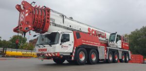 Basic machine with boom 37 – 197 ft m incl CCS, 57,760 lbs counterweight, drive 8 x 4 x 8, Mercedes-Benz engine, A/C in upper and lower cabins, outrigger pressure indicator, upper cabin tiltable 20°, outrigger spotlights, working range limiter, backup camera, MegaDrive hybrid system Additional equipment / features